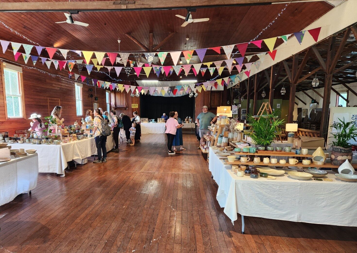 Photo Gallery Hall front Rail trail reserve opposite hall Street from kitchen window South side of hall Outlook from front verandah Sample table setup – main hall Sample table setup – main hall Art market Pottery market Kitchen Kitchen Tea & scones for two @ Spokers Cafe
